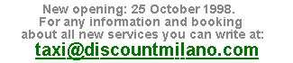 BOOKING-RESERVATION: Email: taximilano@discountmilano.com |