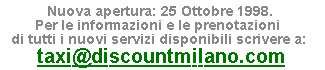 PRENOTAZIONI: Email: taximilano@discountmilano.com |